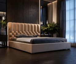 Das Polsterbett Roma ist ein schönes Möbelstück im modernen Stil. Es ist eine ausgezeichnete Wahl für anspruchsvolle Kunden, Schönheit und hervorragende Verarbeitung schätzen. Mit dem Doppelbett Roma erhalten Sie eine geräumige Ruheoase für Ihr Schlaf- oder Gästezimmer. Eine Besonderheit ist die Kopfstütze. Es dient nicht nur als Accessoire, sondern auch als eine bequeme Stütze für die Wirbelsäule in sitzender Position.