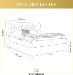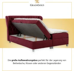 Das Kontinentalbett Janke ist außerdem mit einem automatischen Öffnungsmechanismus mit Federunterstützung ausgestattet, so dass Sie die Kästen leicht anheben können, um Bettzeug und andere Gegenstände zu verstauen.