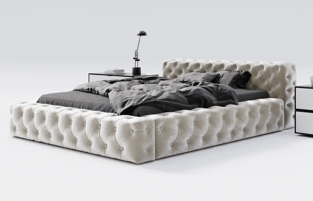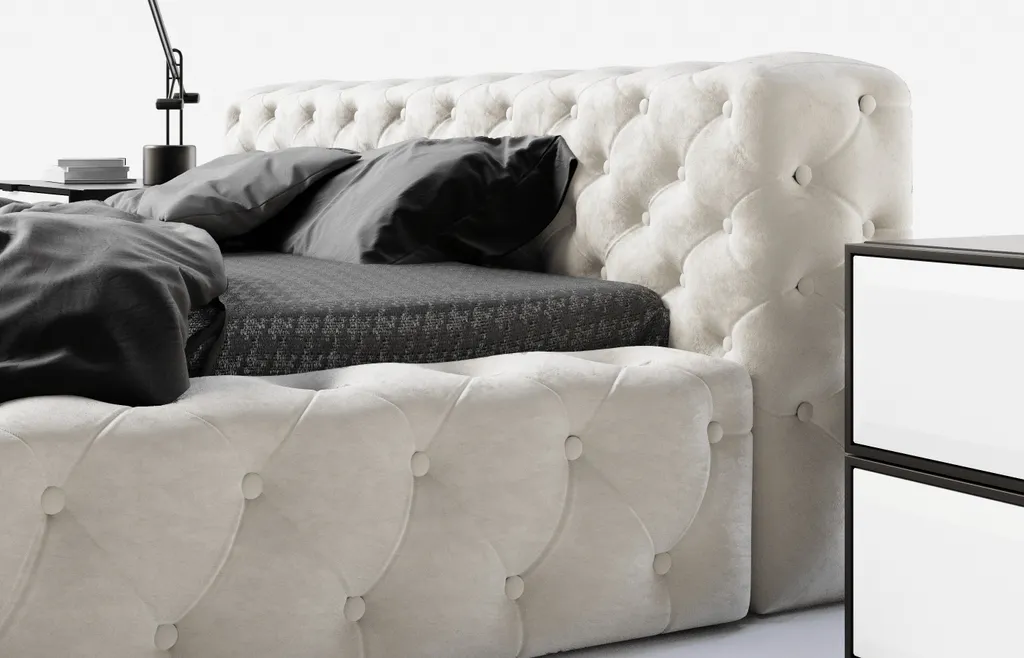 Das Polsterbett Armani Bis ist ein Modell aus der Premium-Kollektion. Es ist ein äußerst gestalterisches, funktionelles und modernes Bett, das den ästhetischen Wert des gesamten Interieurs aufwertet. Neben seiner tollen Optik ist dieses Modell auch sehr funktional, denn es ist mit einem großen Bettkasten ausgestattet. Dank dieser Lösung bewahren Sie alle notwendigen Dinge an einem Ort auf.