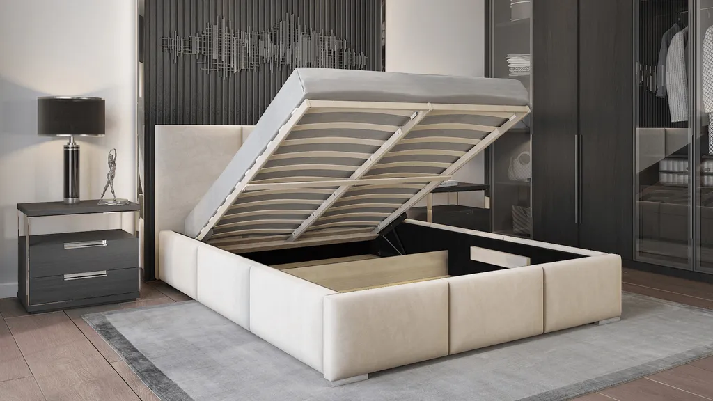 Das Doppelbett Lovro besticht durch das ausgefallene Design. Es ist eine ausgezeichnete Wahl für anspruchsvolle Kunden, Schönheit und hervorragende Verarbeitung schätzen. Eine Besonderheit ist die Kopfstütze. Es dient nicht nur als Accessoire, sondern auch als eine bequeme Stütze für die Wirbelsäule in sitzender Position.