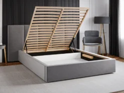 Das Polsterbett Lisbon ist in den Größen 120 × 200, 140 × 200, 160 × 200, 180 × 200 erhältlich und eignet sich damit sowohl für kleine als auch für geräumige Schlafzimmer. Diese Möbel sind nicht nur schön im Aussehen, sondern auch in großer Funktionalität. Das Modern Bett Lisbon ruht auf einem massiven Holzrahmen mit einem großen Bettkasten darunter.