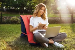 Die aufblasbare Matratze kombiniert die Vorteile einer Sitzmatratze mit dem Komfort einer Luftmatratze. Mit den mitgelieferten Seitengurten können Sie die Luftmatratze ganz einfach in einen bequemen Campingstuhl verwandeln. Sie weist ein tolles, zweifarbiges Design in Rot und Dunkelblau auf und lässt sich auf beiden Seiten verwenden. Der weiche Stoff erleichtert die Aufbewahrung und den Transport.