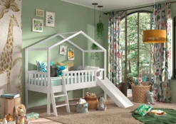Das Trägermaterial ist Kiefer massiv, weiß lackiert. Die stabile Bauweise (Postenstärke 6,0 x 6,0 cm) und hochwertige Verarbeitung zeichnen dieses Bett aus.