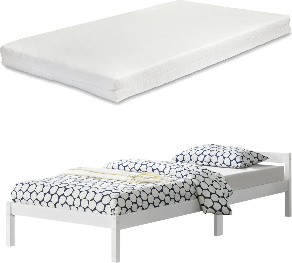 Das stabile Bett aus Kiefernholz verschönert durch seine Optik jedes Schlafzimmer und bietet einen angenehmen Schlafplatz.