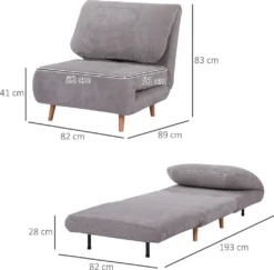 – Gesamtmaße: 82L x 89B x 83Hcm (Sofa), 193L x 82B x 28Hcm (Bett)