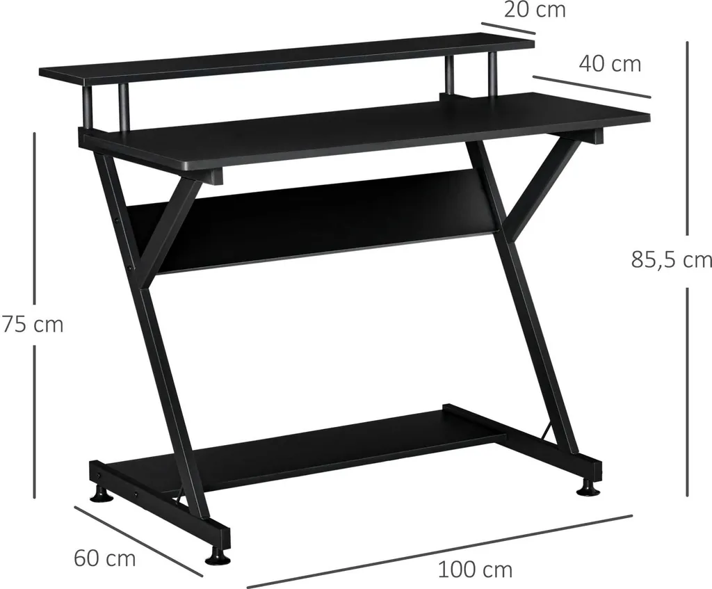 Gesamtmaße: 100L x 60B x 85,5H cm, Tischplattenmaße: 100L x 40B x 75H cm. Maximale Belastbarkeit: (Gesamt)40 kg, (Tischplatte)20 kg, (Regal)10 kg. Montage erforderlich