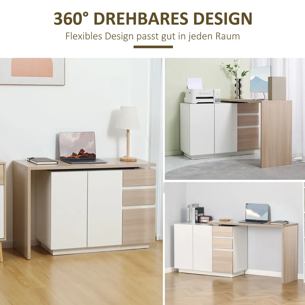 Sowohl der Schreibtisch als auch der darunter liegende Schrank können in eine L-Form oder eine gerade Form gedreht werden. Sie können ihn so aufstellen, wie Sie es brauchen, und erhalten so genügend Komfort und Flexibilität.