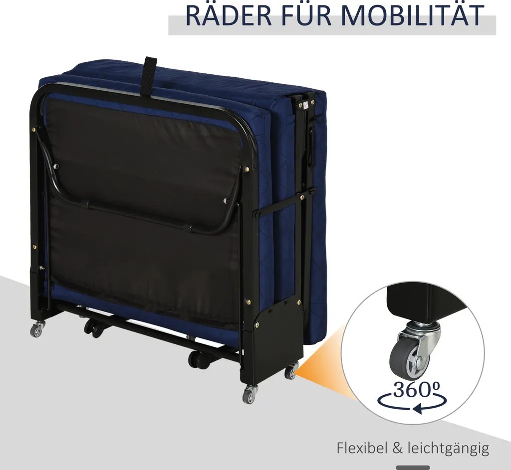 Sie können dieses Gästebett ohne zusätzliches Werkzeug in Sekundenschnelle aufklappen. Dank der zusätzlichen 5 universellen Lenkrollen lässt sich das Bett super bequem an jeden gewünschten Ort bewegen. Ihre Gäste können sehr bald gut schlafen.