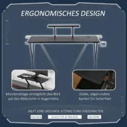 Dieser Schreibtisch ist als Gamingtisch, Computertisch oder Schreibtisch einsetzbar.