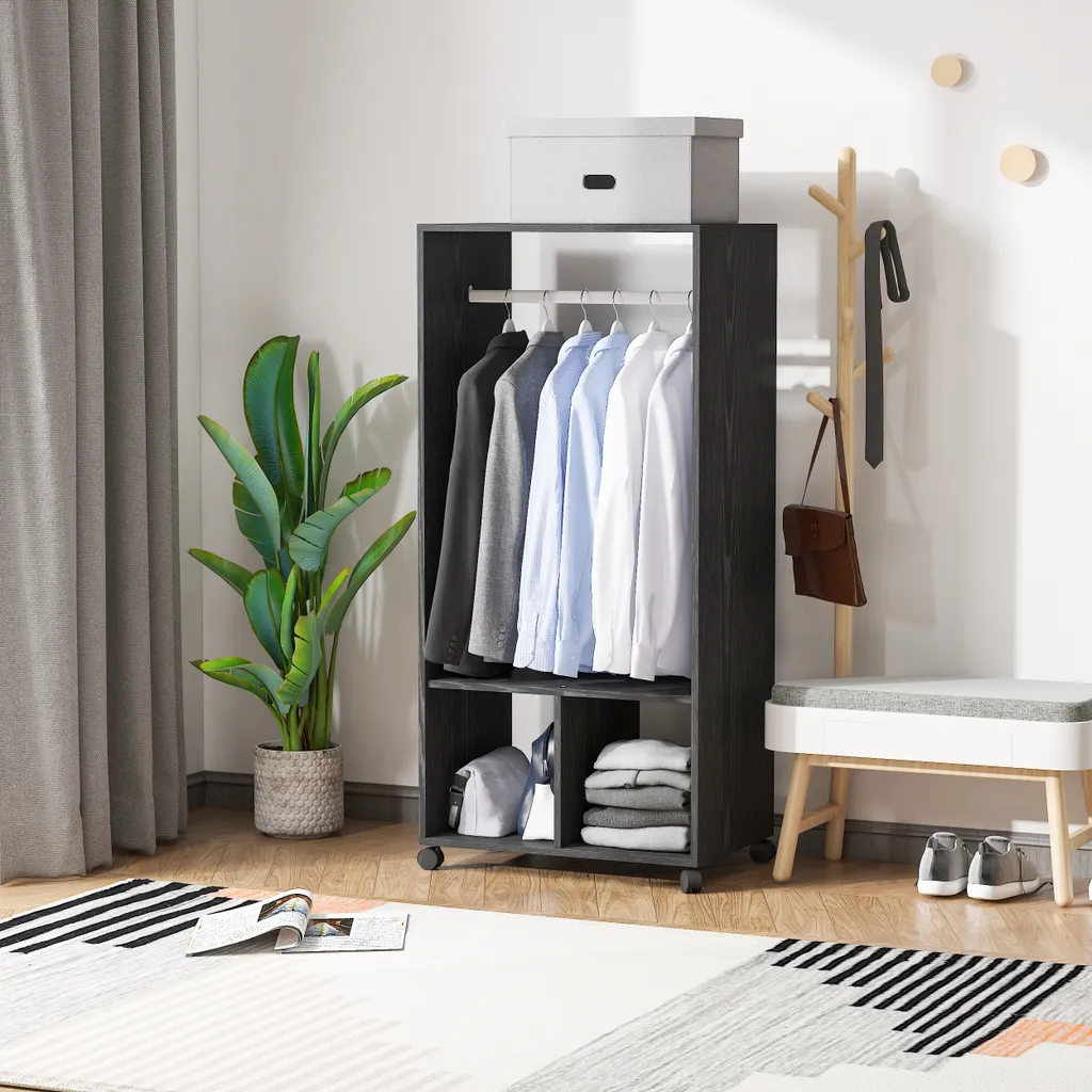 · Vier Räder, von denen zwei feststellbar sind, ermöglichen es Ihnen, Ihre Garderobe mit Leichtigkeit zu bewegen