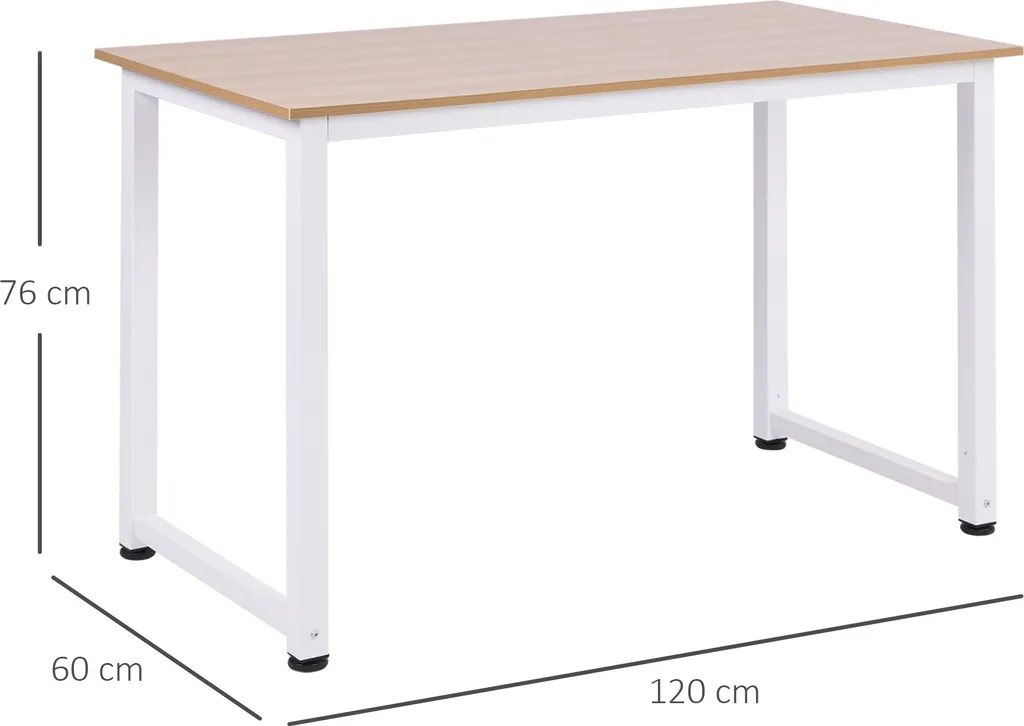 Mit seinem Metallgestell samt Querstreben und der wasserabweisenden Tischplatte aus melaminiertem MDF ist dieser Schreibtisch pflegeleicht und stabil mit einer Belastbarkeit von stolzen 100 kg.
