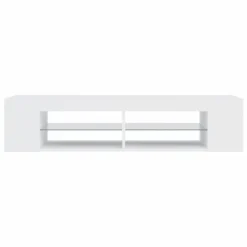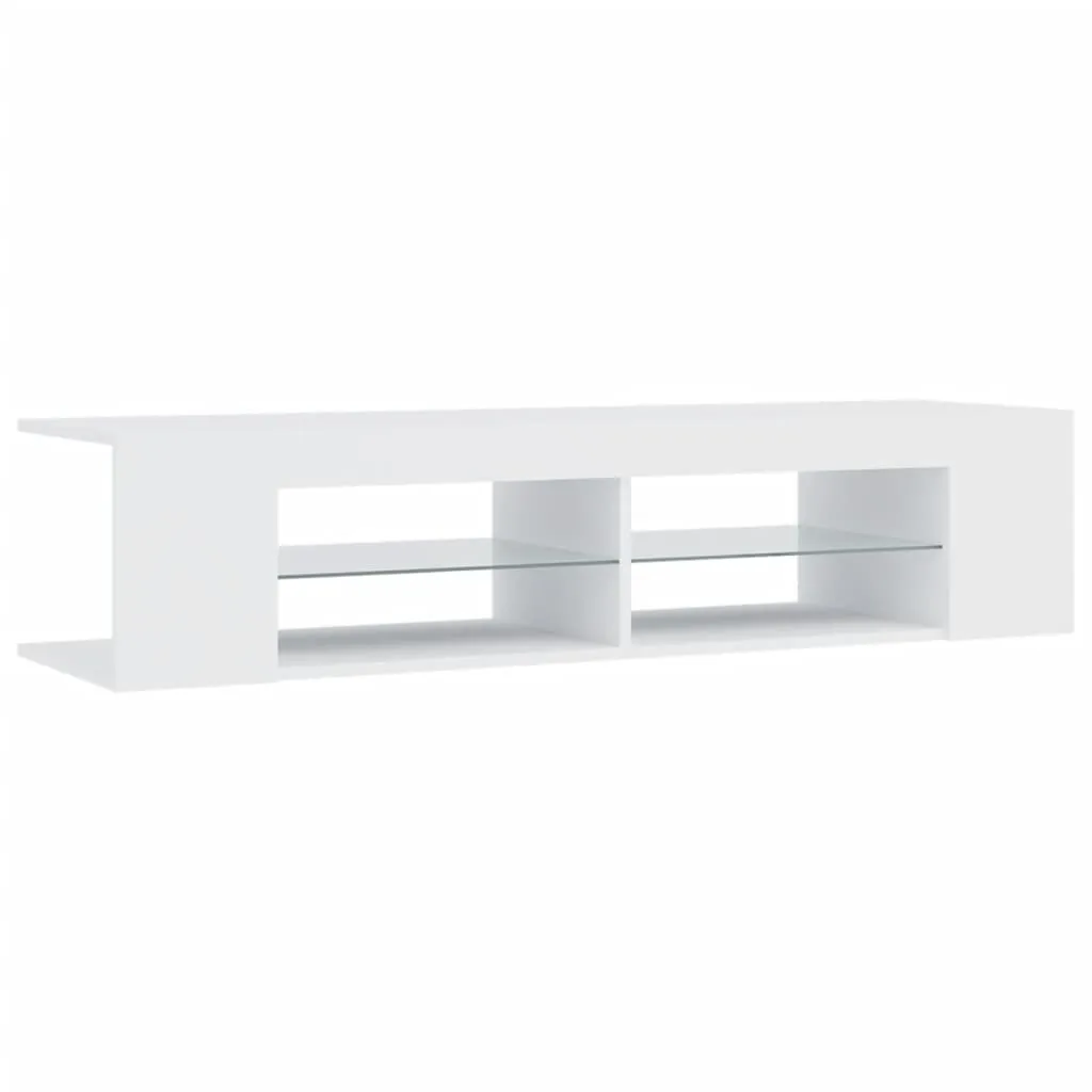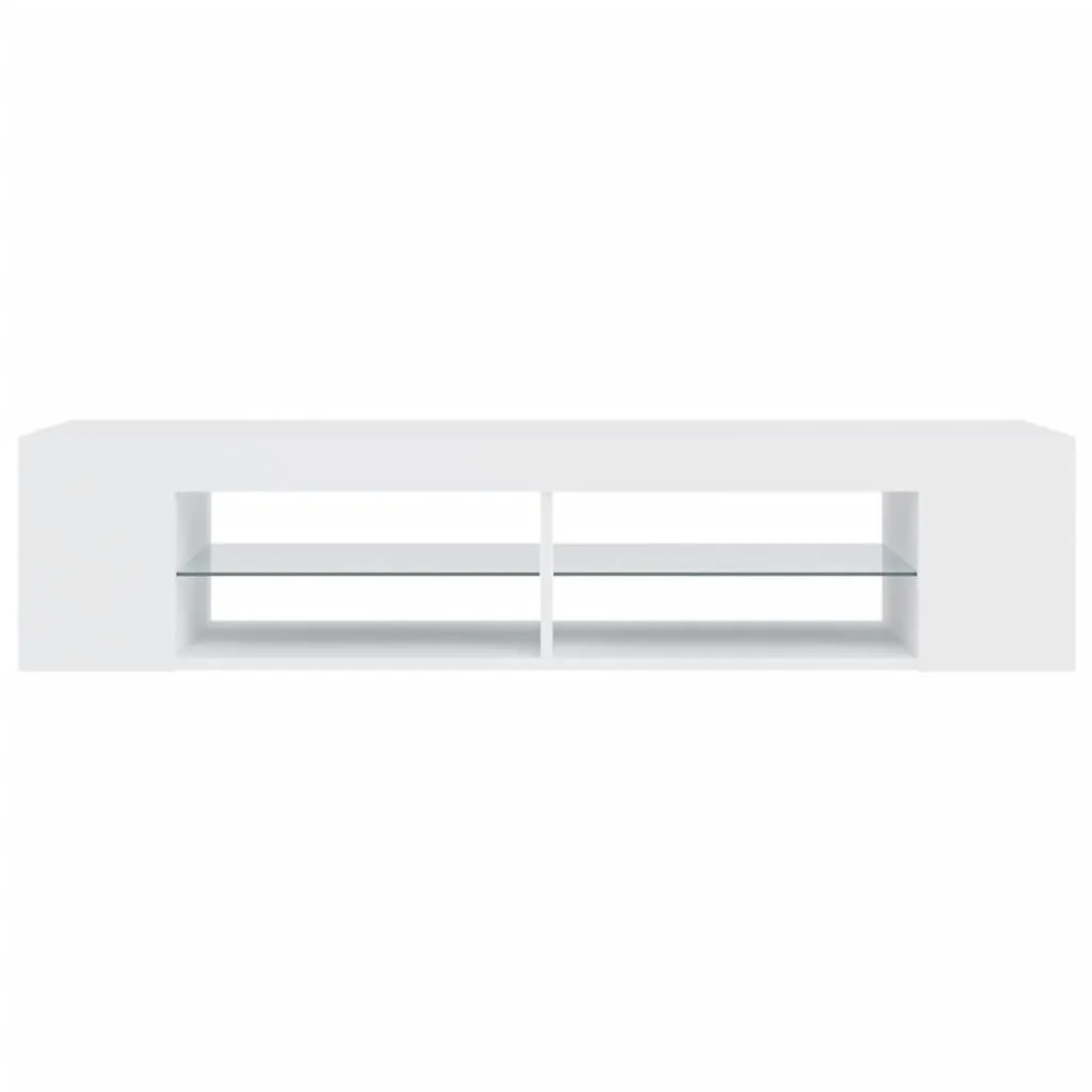 Mit seinem trendigen und dennoch praktischen Design wird dieser TV-Schrank mit LED-Leuchten ganz bestimmt zum Hingucker in Ihrer Wohnung. Die robuste Konstruktion dieses HiFi-Schranks macht ihn sehr langlebig. Es bietet reichlich Platz, um Ihren DVD-Player, Ihre Spielekonsole, Ihr Streaming-Gerät und Ihre Medienträger ordentlich zu organisieren. Dieser TV-Ständer verfügt über RGB-LED-Leuchten, die über verschiedene Menüs verfügen, um die Farbe der Lichter zu ändern und die Farbe automatisch unterschiedlich anpassen zu lassen. Die LED-Leuchten unterstreichen den modernen Look und tragen zum trendigen Feeling bei. Außerdem lässt sich dieser TV-Schrank leicht mit einem feuchten Tuch reinigen.