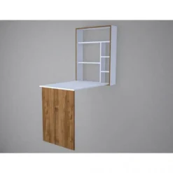 Er besteht aus einer Wandbox, die sich ganz einfach in einen praktischen Laptoptisch verwandeln lässt. Schieben Sie einfach die Tischplatte nach unten und genießen Sie den gemütlichen Arbeitsraum mit praktischen Ablagefächern.