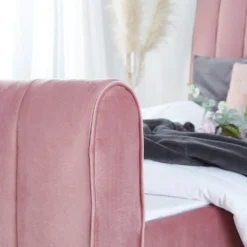 Polsterbett Samt 140 x 200 cm in leicht schimmerndem Rosaton