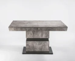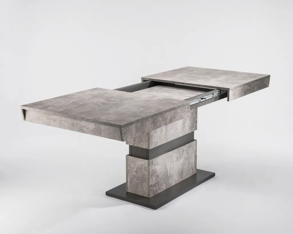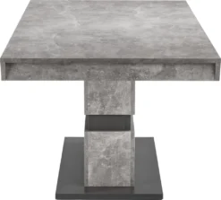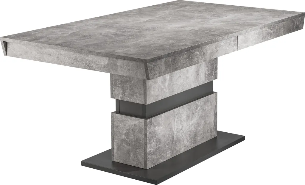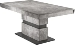 Der Esszimmertisch MARLEY 140 AZ in Melamin Light Atelier Optik mit Melaminbeschichtung überzeugt nicht nur durch seine hochwertige Verarbeitung, sondern auch durch sein zeitloses, modernes Design. Die formschöne Säule lässt den Tisch außergewöhnlich und modern wirken. Durch seinen zeitlosen Stil passt er sich vielen Einrichtungsstilen perfekt an. Der Tisch verfügt über einen gebremsten Synchronauszug und einer 55 cm Einlegeplatte, dadurch lässt er sich mühelos von 140 cm auf 195 cm verlängern