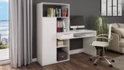 Der Tisch in Betonoptik und einer 18mm starken Melamin-Tischplatte ist besonders pflegeleicht und resistent gegen Schmutz und Fettstoffe. Er lässt sich leicht mit einem feuchten Tuch reinigen.