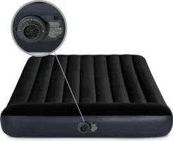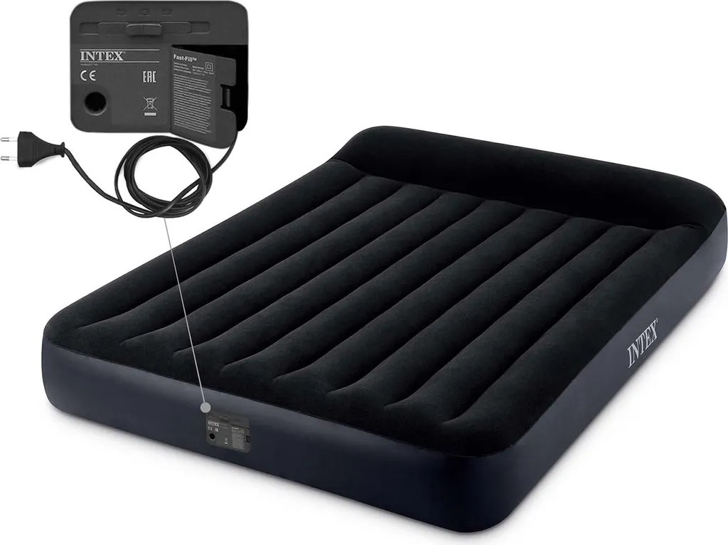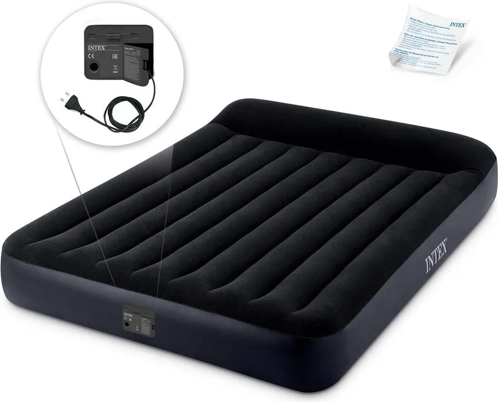 Die Luftmatratze Intex Pillow Rest Classic für 2 Personen mit den Maßen 152 x 203 x 51 cm ist für zu Hause oder unterwegs geeignet. Die Innenseite der Luftmatratze enthält Polyesterfäden, die von der Ober-zur Unterseite der Luftmatratze verlaufen. Diese Tausenden von Fasern sorgen für perfekte Stabilität und revorragende Unterstützung des Körpers. Diese innere Struktur mit unterstützten Dura-Beam-Fasern, auch Fiber-Tech-Technologie genannt, ist ein einzigartiges Merkmal dieser Intex-Luftmatratzen und ein Garant für ein angenehmes Schlaferlebnis. Die Luftmatratze verfügt über eine interne Quickfill Plus-Pumpe, sodass Sie nur den Stecker einstecken und den Knopf auf „+“ drehen müssen, um die Luftmatratze aufzublasen. Um die Luftmatratze nach Gebrauch zu entleeren, drehen Sie den Knopf auf „-“ und die Luftmatratze entleert sich. Die Luftmatratze lässt sich leicht sisammenfalten und Dank der samtigen Liegefläche liegen Sie wunderbar weich. Für zusätzlichen Komfort hat diese Luftmatratze ein eingebautes Kissen.