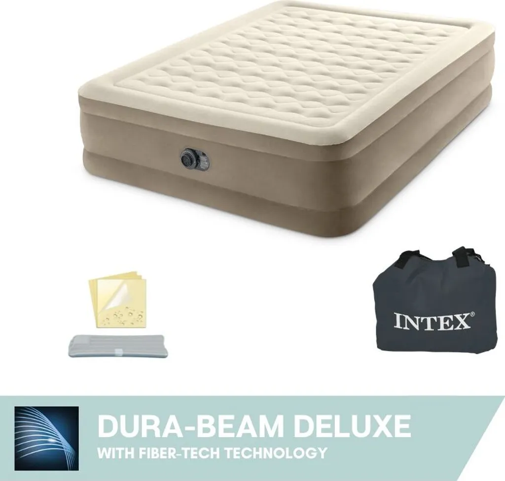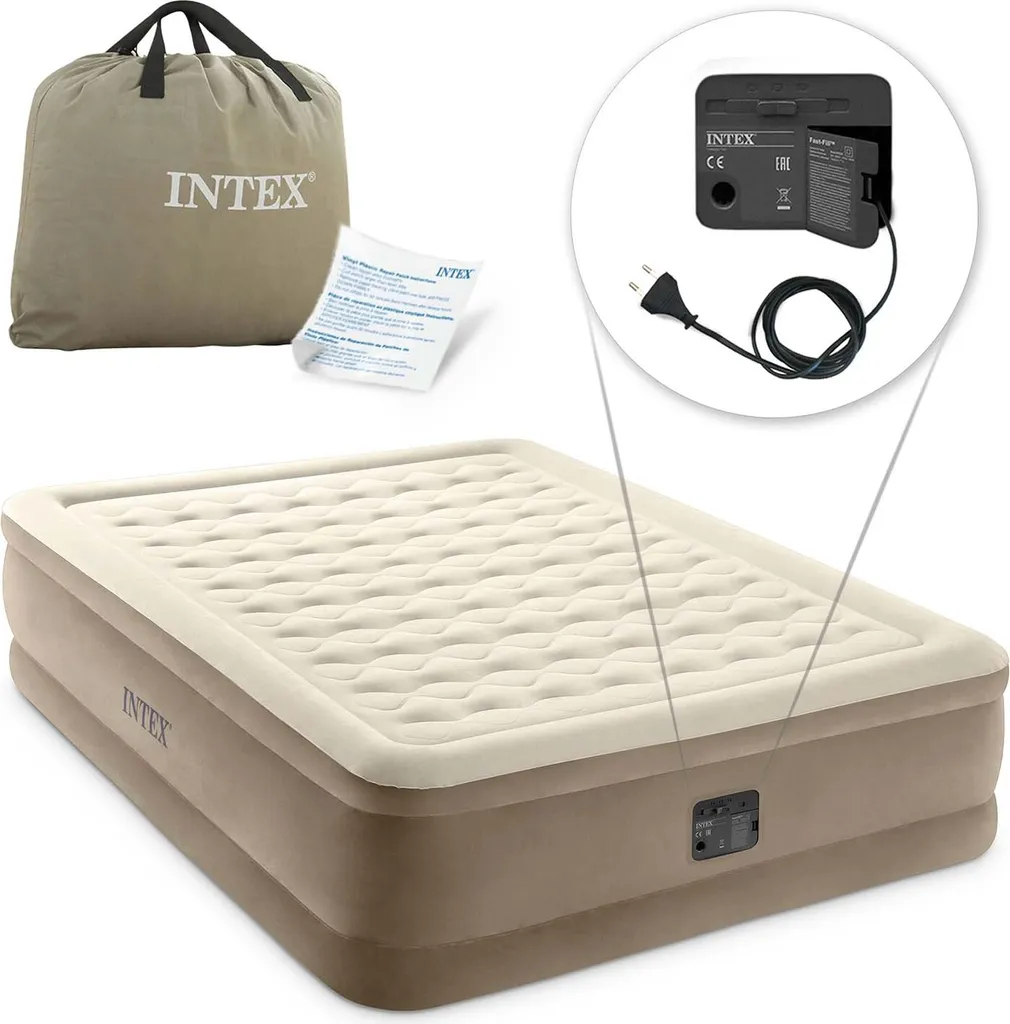 1xIntex Ultra Plush – Luftmatratze – 2 Personen – 152x203x46 cm (BxLxH) – Beige – Mit eingebauter MotorpumpeAchtung!