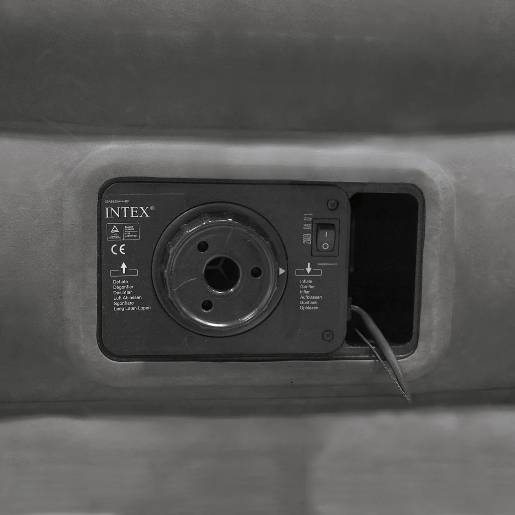 Gönnen Sie sich einen erholsamen Schlaf mit diesem erhöhten Plüsch-Luftbett mit eingebauter Pumpe von Intex!
