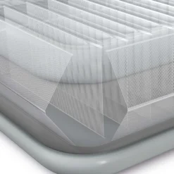 Die Luftmatratze verfügt über eine Fiber-Tech-Technologie, die Ihren Gästen eine bessere Unterstützung und Festigkeit verleiht. Die leistungsstarke eingebaute Pumpe sorgt für müheloses Aufpumpen und Entleeren. Das zweilagige, samtige Obermaterial bietet eine bequeme und glatte Liegefläche und sorgt für einen erholsamen Schlaf. Darüber hinaus ist diese Luftmatratze auch besonders hoch, ideal für ältere Menschen oder Menschen mit Rückenproblemen. Um Ihre Comfort Plush Luftmatratze zu schützen, empfehlen wir Ihnen, ein Spannbetttuch zu verwenden, damit die Oberschicht sauber bleibt.