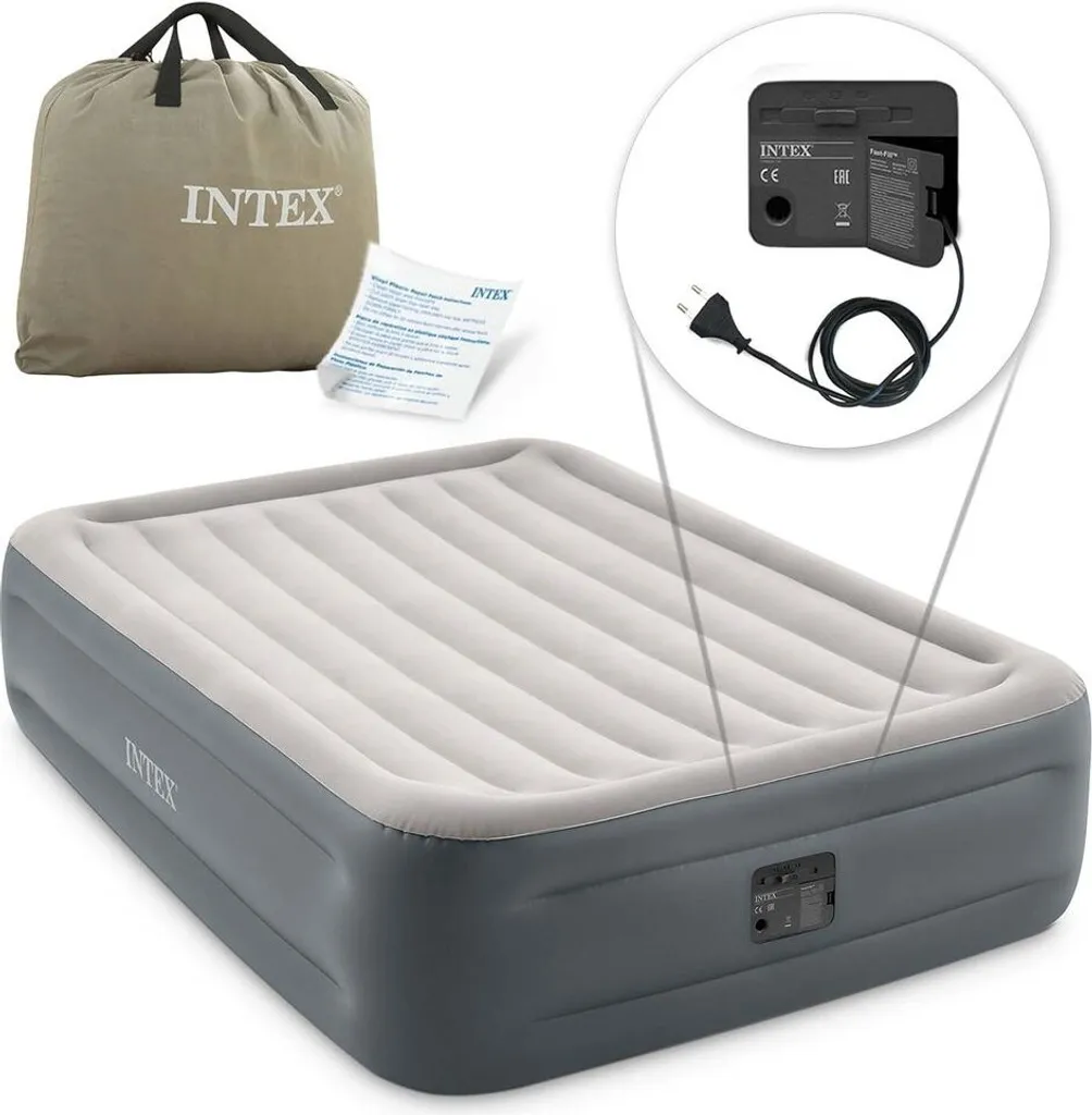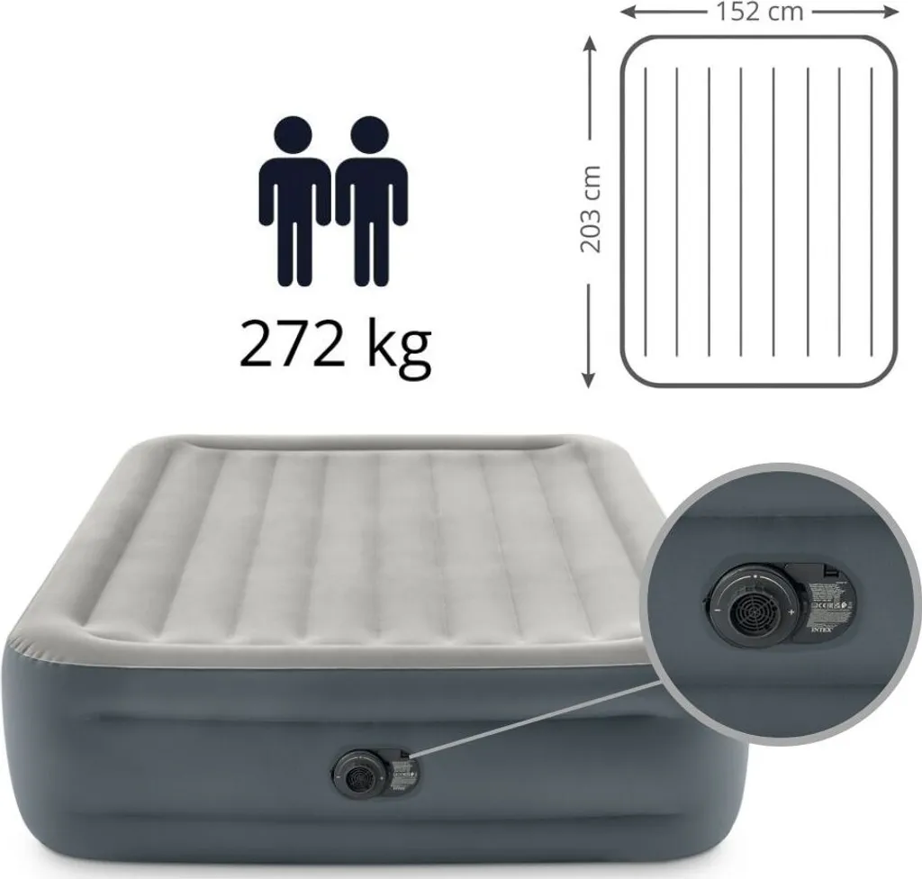 1xIntex Essential Rest – Luftmatratze – 2 Personen – 152x203x46 cm (BxLxH) – Grau – Mit eingebauter MotorpumpeAchtung!
