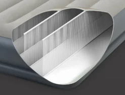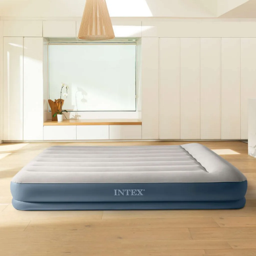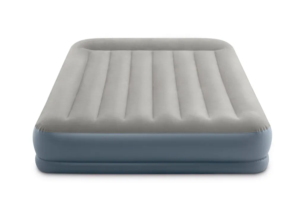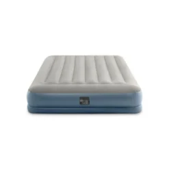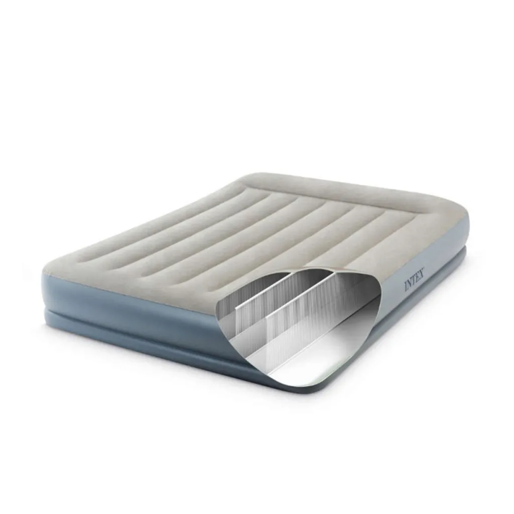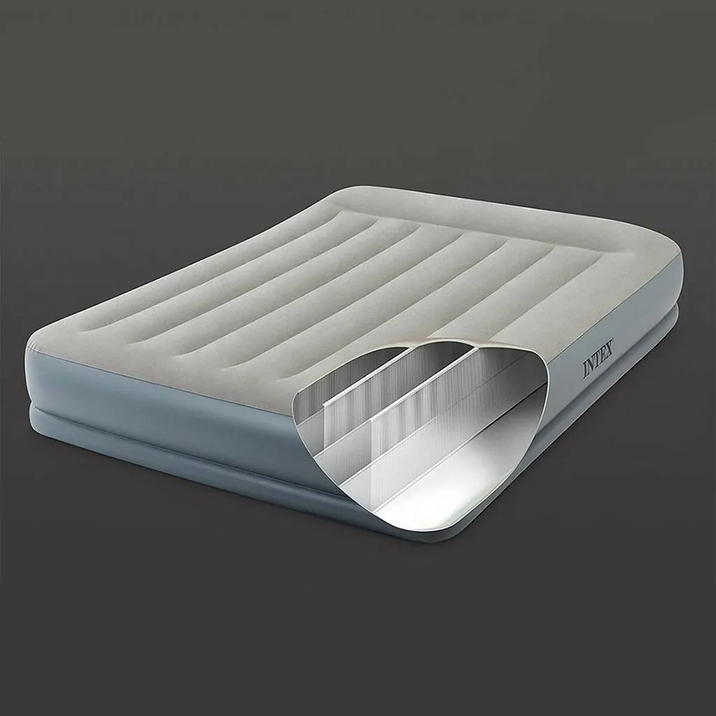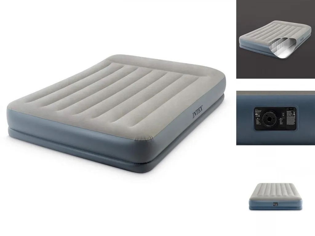 Die Intex Luftmatratze ist die perfekte Schlaflösung. Es bietet sowohl Campern als auch Heimanwendern die Bequemlichkeit eines leichten, komfortablen Bettes mit integriertem Kissenrand. Mit einer separaten Pumpe wird sie so aufgeblasen und die weiche Deckschicht kombiniert mit der Fiber-Tech-Technologie bietet mehr Komfort. Wenn Sie auf einem Luftbett mit Fiber-Tech-Technologie schlafen, liegen Sie nicht nur auf einem mit Luft gefüllten Bett. Die Innenseite der Luftmatratze besteht aus Tausenden von Polyesterfasern, die von oben nach unten verlaufen. Diese Gewinde sorgen für perfekte Stabilität und unterstützen den Körper optimal. Die langlebigen Fiber-Tech-Fasern dehnen sich im Laufe der Zeit nicht aus, so dass Sie genauso komfortabel schlafen werden wie beim ersten Mal. Farbe: grau Material: Polyester Abmessungen: 152 x 203 x 30 cm (L x B x H) Anzahl der Personen: einzeln Fiber-Tech Innenstruktur max. Belastbarkeit ca. 272 kg
