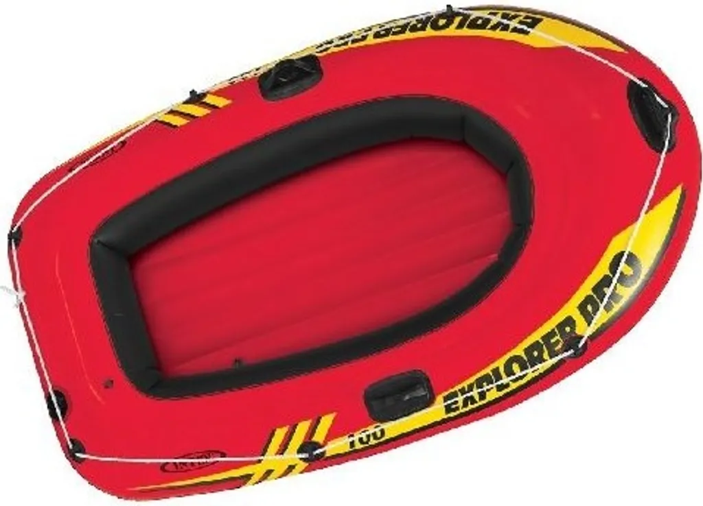Detalles: DescripciĂłn del producto Barco hinchable Intex Explorer Pro 100. Incluye 3 cámaras de aire y otra auxiliar, asa resistente en proa y cuerda de sujeciĂłn. Fabricado de vinilo resistente y suelo hinchable. Capacidad: 1 persona (80 kg), mide 160 x 94 x 29 cm. Advertencia de seguridad No conviene para menores de 0 meses. UtilĂcese bajo vigilancia de adulto. Contenido de la caja 1 x Barco, 160 x 94 x 29 cm (58355NP)