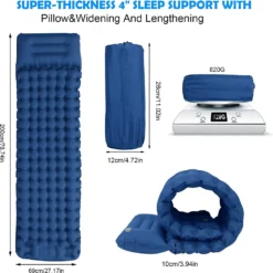 🍀【Dicker und bequemer】 Im Vergleich zu den meisten 6-8cm Matten Outdoor auf dem Markt ist diese verbesserte Isomatte Camping in mehrere kleine ergonomische Airbags mit einer durchschnittlichen Dicke von 10cm eingebaut, wenn sie vollständig aufgeblasen ist, was dick genug, hochfest und elastisch ist. Dadurch sind Sie vollständig von kaltem Boden und harten Steinen isoliert, egal ob Sie springen, sitzen, auf der Seite schlafen oder flach darauf liegen, Sie werden sich nicht unwohl fühlen.