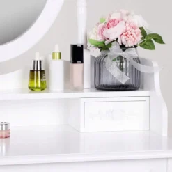 Ausstattung: Schminktisch mit Spiegel, 4 Schubladen, Hocker