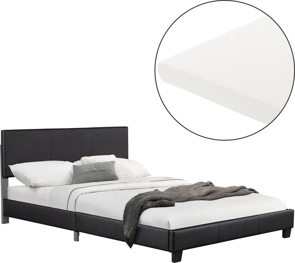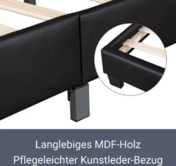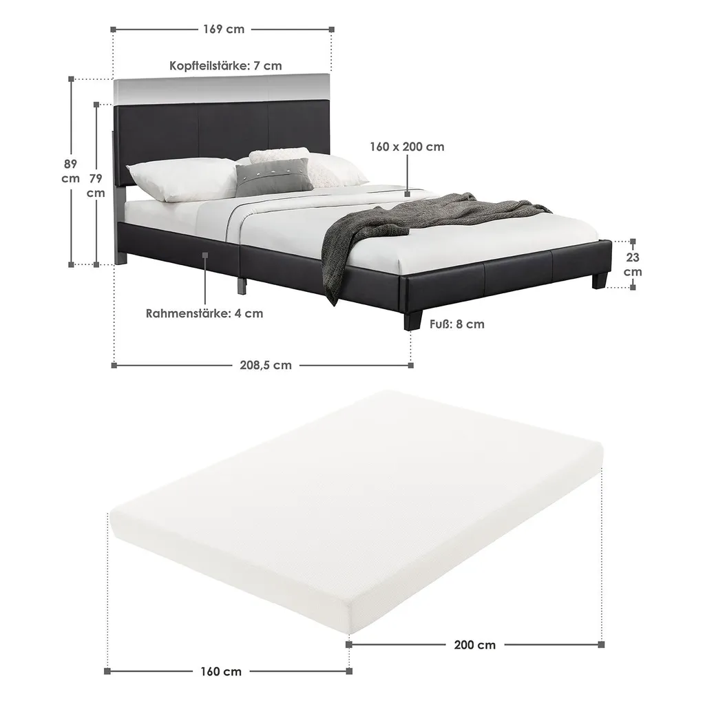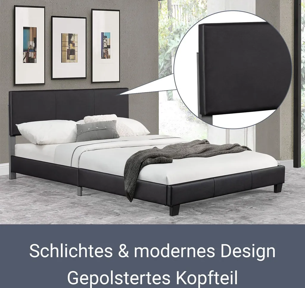 Das gemĂĽtliche Polsterbett Bolonia (160×200 cm, schwarz) ist ein schlichtes, aber zugleich schönes Kunstlederbett fĂĽr Erwachsene, Jugendliche und Teenager. Es hat ein flaches Profil mit einem weich gepolsterten Kopfteil. In Ihrem Gäste- oder Schlafzimmer wird es mit seiner zurĂĽckhaltenden Eleganz viele Blicke auf sich ziehen. Der inbegriffene Lattenrost bietet ideale StĂĽtzkraft fĂĽr die 160×200 cm groĂźe ergonomische Kaltschaummatratze. Sie liegen darauf optimal, um gesund und erholsam zu schlafen.