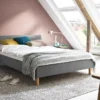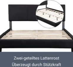 Zum Bettrahmen wird ein passender zwei-geteilter Lattenrost mit Holzsprossen und freitragender Mittelleiste geliefert. Er stĂĽtzt Ihre 160×200 cm groĂźe Matratze optimal ab und lässt Sie gemĂĽtlich und sicher in einen tiefen Schlaf und schöne Träume sinken.
