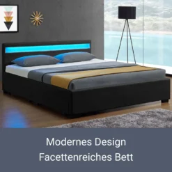 Mit dem Polsterbett Lyon (140×200 cm, schwarz) holen Sie sich den Alleskönner in Ihr Heim! Das Stauraumbett ist ein Platzwunder und besticht mit moderner Ausstattung. Als Einzel-, Jugend- oder Gästebett passt es auch in kleine Schlafzimmer. Auf dem stabilen Lattenrost können Sie die 140×200 cm große ergonomische Kaltschaummatratze optimal platzieren und schlafen gesund und komfortabel. Auch das hohe Kopfteil bringt viele Vorteile mit. Es dient zum einen als gemütliche Lehne. Zum anderen beleuchtet es dank LED-Leiste den Raum mit wunderschönem indirektem Licht.