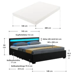 - Matratze: 140 × 200 cm