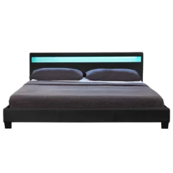 Das Polsterbett Paris (140×200 cm, schwarz) ist ein echter Glücksgriff. Auf der Kombi aus Bettrahmen und Lattenrost schlafen Sie traumhaft gemütlich und erholsam. Der Lattenrost bietet die ideale Liegefläche für Ihre 140×200 cm große Matratze, welche sich wunderbar für Jugendliche wie auch Erwachsene eignet. Durch die platzsparende Größe passt es perfekt in kleine Schlaf- oder Gästezimmer. An das bequem gepolsterte Kopfteil gelehnt, entspannen Sie auch beim Lesen oder Fernsehen. Es besitzt eine integrierte LED-Leiste, dessen Licht auf dem schwarzen Kunstleder eine wunderschöne Wirkung hat und dem Raum ein großartiges Flair verleiht.