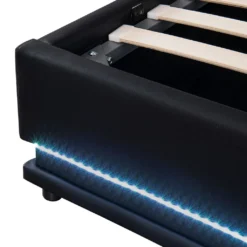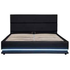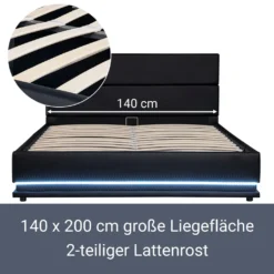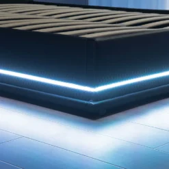 Um den Bettrahmen herum verläuft eine LED-Leiste, die in einem wunderschönen weißen Licht leuchtet. Durch die indirekte Lichtquelle scheint das Bett zu schweben und sie können sich im abgedunkelten Schlafzimmer immer noch gut orientieren.