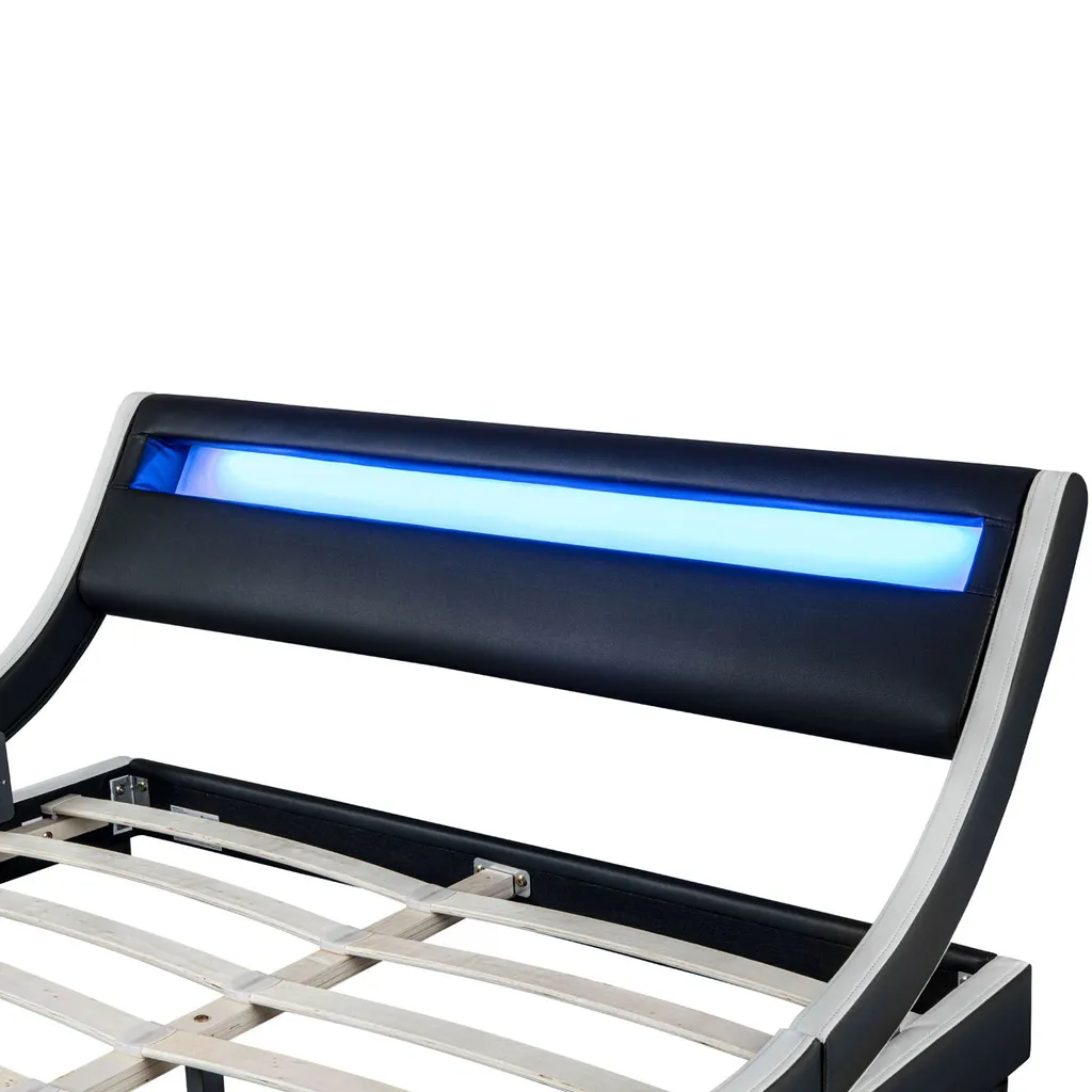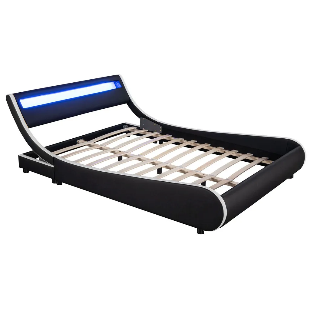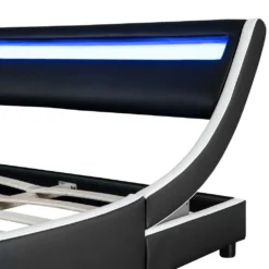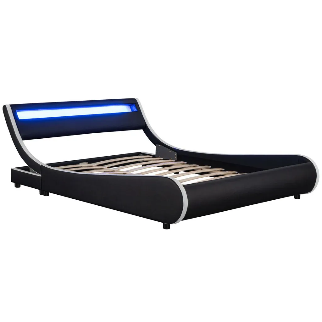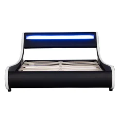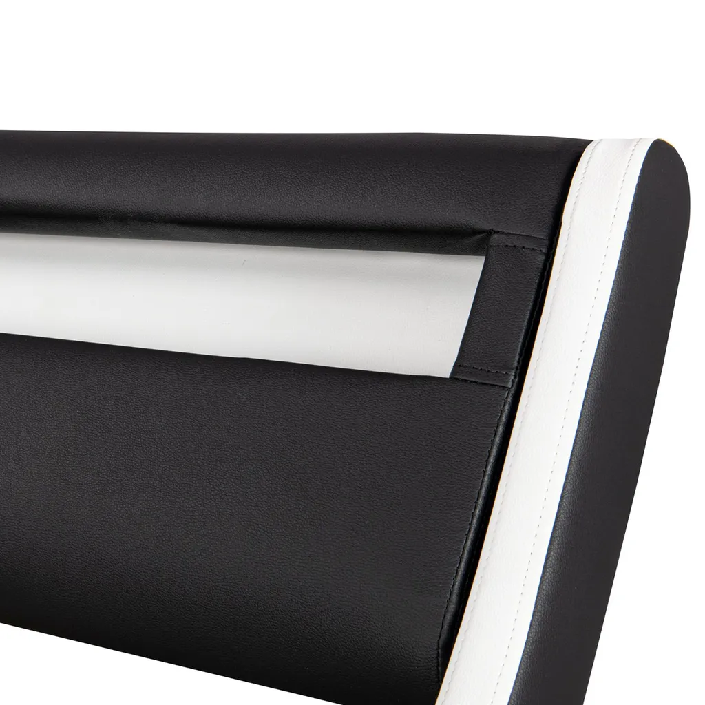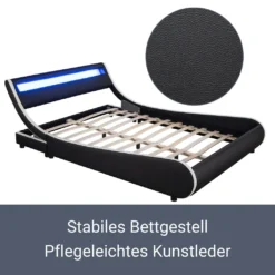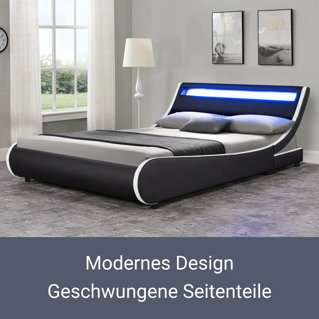 Das schöne Bettgestell überzeugt durch elegant geschwungene Seitenteile, ein 71 cm hohes Kopfteil mit integrierter LED-Leiste und einem schlichten Bezug aus weichem Kunstleder. Dieses Zusammenspiel aus Eleganz und Moderne macht das Polsterbett Valencia zum wahren Eyecatcher.