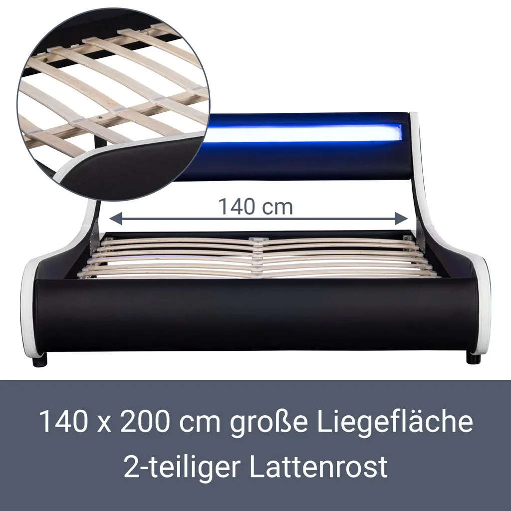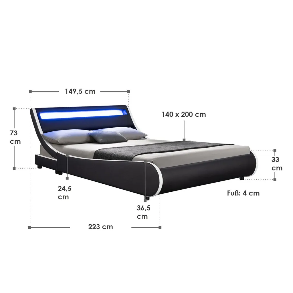 Mit dem Polsterbett Valencia (140×200 cm, schwarz) treffen Sie genau ins Schwarze: Das Kunstlederbett ist eine Mischung aus elegantem Design und moderner Ausstattung. Es bietet Erwachsenen, Jugendlichen und Kindern einen stilvollen RĂĽckzugsort mit indirekter Beleuchtung und viel Komfort. Auf dem stabilen Lattenrost aus Holz können Sie Ihre 140×200 cm groĂźe Matratze ideal platzieren und schlafen ĂĽberaus gemĂĽtlich. Doch auch tagsĂĽber bietet das Bett zahlreiche Vorteile. Das hohe Kopfteil lädt zum Anlehnen und Entspannen ein. Dabei sorgt die steuerbare LED-Leiste fĂĽr die passende Atmosphäre.