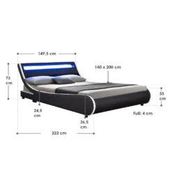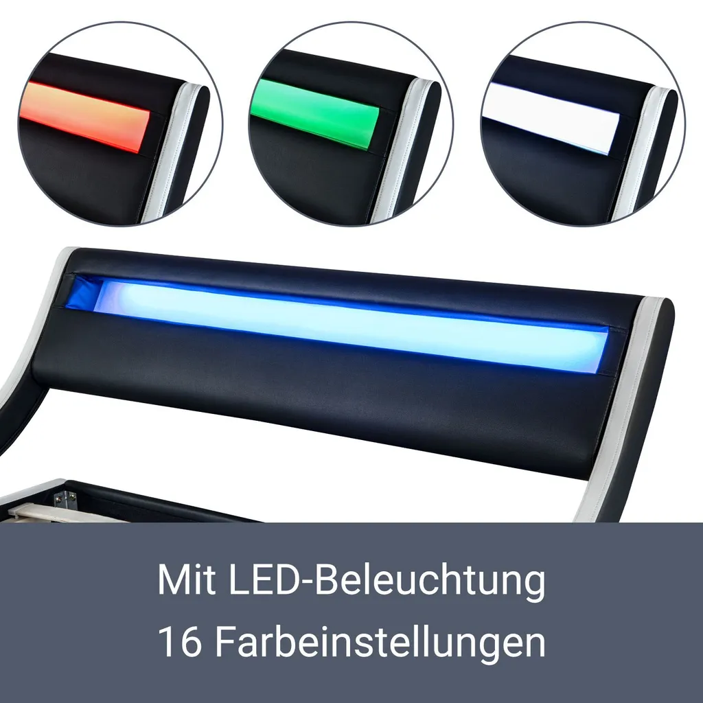 Ein im Kopfteil eingelassenes LED-Licht sorgt für eine schöne Belichtung im Schlafzimmer. Es ist per Fernbedienung steuerbar und variiert zwischen 16 verschiedenen Lichtfarben. Die indirekte Beleuchtung der LED-Leiste erspart Ihnen somit sogar den Kauf einer Nachttischlampe.