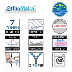 Diese orthopädische 7-Zonen-Kaltschaummatratze bietet sehr gute Liegeeigenschaften und ist für jeden Körpertyp geeignet.