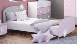 Das Kinder-Bett „Savannah I“ bezaubert durch seine Farbkombination von mattem Weiß, süßem Rosa und hellem Grau, genau richtig für kleine Prinzessinnen und alle die es werden wollen.