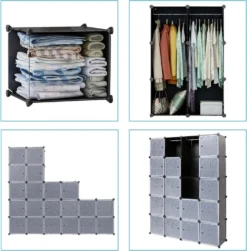 - Grosser Raum — Die freie Kombination passt in jedem Wohnbereich, z.B. im Büro. Das ist perfekt geeignet für die Aufbewahrung oder Ordnung von Kleidung, Schuhen, Taschen, Büchern usw. Abmessungen von einzelnem Kubus ist 35 * 35 * 37 cm.