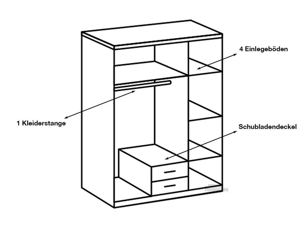 Gestaltet wurde unser Drehtürenschrank in einer Kombination aus warmer Plankeneiche und modernem Graphit. Diese Farbgestaltung erinnert an den angesagten Industrial Style und hinterlässt eine gechillte Atmosphäre. Zudem erhalten Sie auf einer Breite von ca. 135 cm jede Menge Stauraummöglichkeiten. Hinter den Drehtüren befinden sich 3 kleineren Einlegeböden, 1 Kleiderstange und einen weiteren großen Einlegeboden. Des Weiteren erhalten Sie eine Menge Stauraum um Ordnungsboxen oder kleinere Körbe im Schrank zu platzieren. So erhalten Sie noch mehr Platz. Jetzt nur noch einmal in den großen Spiegel schauen und das Styling checken und Los geht’s!