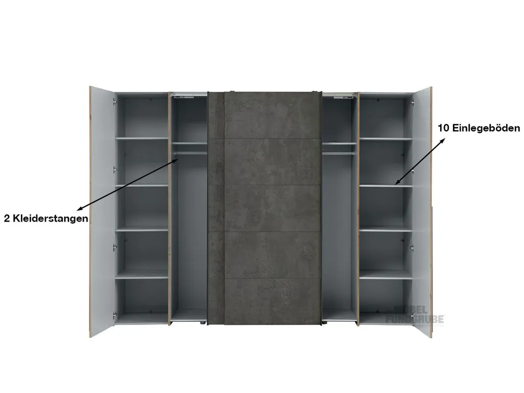 10 Einlegeböden, 2 Kleiderstangen