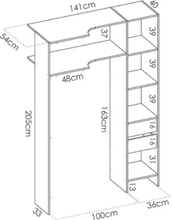 - Maximale Belastung der Kleiderstangen: 15 kg