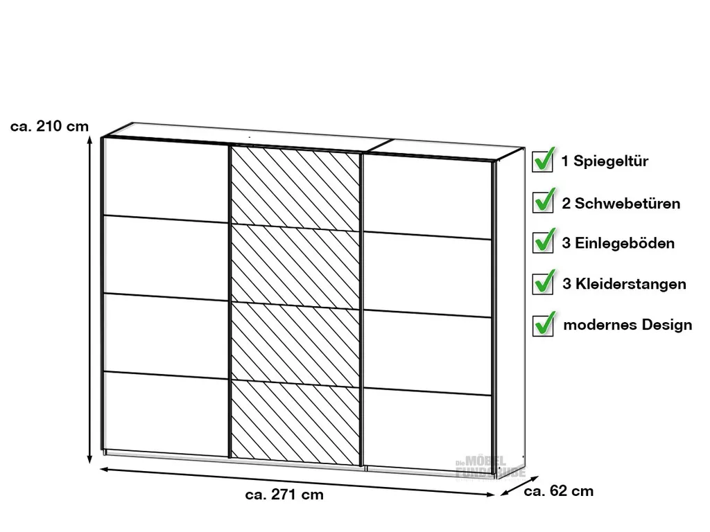 Die schlichte Farbgebung in weiß erstreckt sich über die Fronten und den Korpus. Durch die naturfarbene Leinenoptik des Innendekors erscheint Ihr neuer Kleiderschrank von innen in einem modernen Design. Auf insgesamt 3 Einlegeböden können Sie Ihre T-Shirts, Pullover und Hosen einräumen und haben genügend Stauraum für weitere Schlafutensilien. Die 3 vorhandenen Kleiderstangen dienen zum Aufhängen von Hemden, Kleidern oder Jacken.