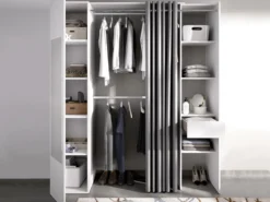 Ihre Kleidung aufzubewahren und staubfrei zu halten, wird mit dem Kleiderschrank BERTRAND kein Problem mehr sein! Mit 2 Spalten und 4 Fächern, von denen eines mit einer Tür verschlossen ist, und 2 Kleiderstangen bietet Ihnen dieser Kleiderschrank viel Stauraum.Mit seinem schlichten und eleganten Design ist BERTRAND der ideale Kleiderschrank, um Ihre Outfits perfekt organisiert aufzubewahren.