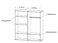 Der Korpus sowie alle Fronten sind in einem schlichten Farbton in weiß gehalten, wodurch Sie dieses Modell mit fast allen Einrichtungsstilen kombinieren können. Die alufarbenen Griffe dienen zum praktischen Öffnen und Schließen der Schranktüren und Schubladen und vollenden außerdem den Look. Hinter den 4 Drehtüren finden Sie insgesamt 2 Einlegeböden und 1 Kleiderstange. Weiteren Stauraum bieten die 4 Schubladen.