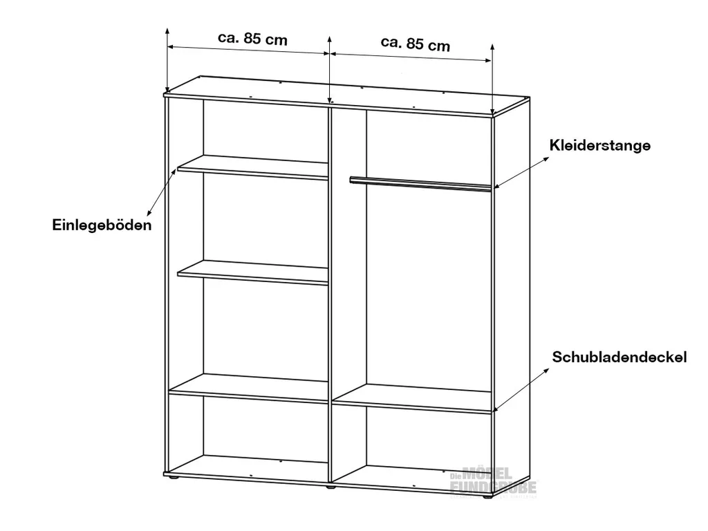 2 Einlegeböden, 1 Kleiderstange