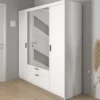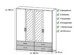 er Korpus sowie die Fronten der Drehtüren sind in einem wärmenden Sonoma Eiche Nachbildung gehalten und die Fronten der Schubkästen in weiß vollenden das klassische Design des Kleiderschrankes. Die alufarbenen Griffe dienen zum praktischen Öffnen und Schließen der Schranktüren und Schubladen. Hinter den 4 Drehtüren finden Sie insgesamt 2 Einlegeböden und 1 Kleiderstange. Weiterer Straumraum bieten die 4 Schubkästen.