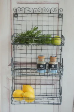 Der Wandkorb ist in Handarbeit hergestellt, daher gehören die leicht schiefen Metallteile und der shabby chic zu diesem Produkt.